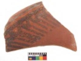 | Description / विवरण | Specimen of black on red ware with decorative geometric Linear Pattern painting. |