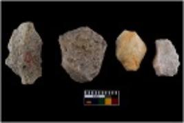 | Description / विवरण | Specimen of cores with visible weathered cortex and few broad fluted marks. Almost all are irregular in shape and size. |