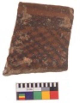 | Description / विवरण | Specimen of black on red ware with decorative geometric Net Pattern painting. |