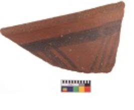 | Description / विवरण | Specimen of black on red ware with decorative geometric Linear Pattern painting. |