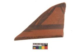 | Description / विवरण | Specimen of black on red ware with decorative geometric Two sets of three oblique bands painting. |