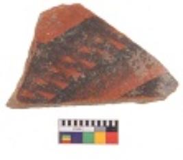 | Description / विवरण | Specimen of black on red ware with decorative black pigment. |