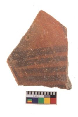 | Description / विवरण | Specimen of black on red ware with decorative geometric Outcurved rim painting. |