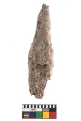 | Description / विवरण | A complete specimen of a nail with tapering oval body with pointed end. |