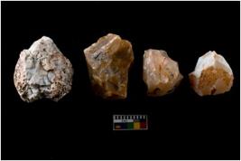 | Description / विवरण | There are n-4 of intact cores. Out of them 3 are made up Chalcedony and 1 is made up of Chert.There are multidirectional irregular dominant scar pattern on both dorsal and ventral face of the cores. |