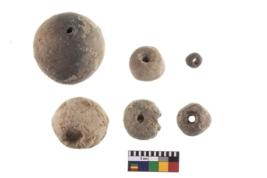 | Description / विवरण | There are six beads, most of these are globular roughly rounded shaped with a central perforation. |