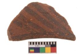 | Description / विवरण | Specimen of black on red ware with decorative geometric Outcurved rim painting. |