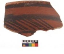 | Description / विवरण | Specimen of black on red ware with decorative geometric Linear Pattern painting. |