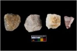 | Description / विवरण | Specimen of cores with visible weathered cortex and few broad fluted marks. Almost all are irregular in shape and size. |