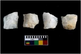 | Description / विवरण | There are n-4 of intact utilized flakes made up of Quartz. Some of them have bulge of percussion and some are flat flakes. |