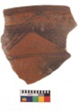 | Description / विवरण | Specimen of black on red ware with decorative geometric Linear Pattern painting. |