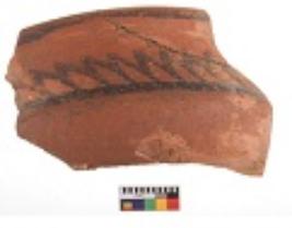 | Description / विवरण | Specimen of black on red ware with decorative zigzag pattern design. |