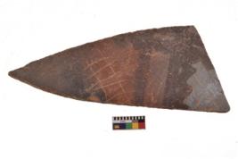 | Description / विवरण | Specimen of red ware with graffiti over the surface. A row of arches over a horizontal bands |