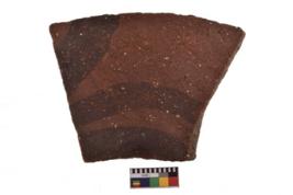 | Description / विवरण | Specimen of black on red ware with decorative geometric Its decorated with two horizontal bands with sets of triple arches painting. |