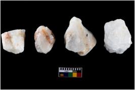 | Description / विवरण | A specimen of a fluted Core with several broad fluted marks indicating the detached blades from it. |
