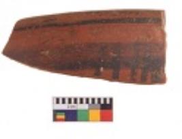 | Description / विवरण | Specimen of black on red ware with decorative geometric Linear Pattern painting. |