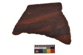 | Description / विवरण | Specimen of black on red ware with decorative geometric Net motif painting. |