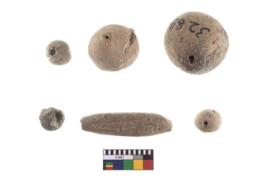 | Description / विवरण | There are six beads, most of these are Standard convex biconvex shaped Areca nut Beads, with having a central perforation. One side end of the bead has been flattened. |
