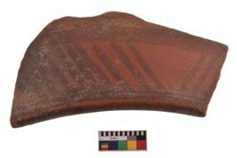 | Description / विवरण | Specimen of black on red ware with decorative geometric Its sides sloping inwards and with a featureless rim painting. |