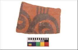 | Description / विवरण | Specimen of potsherd with black decorative geometric painting. Type Black on Red Ware . |