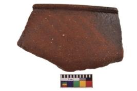| Description / विवरण | Specimen of black on red ware with decorative geometric Its sides sloping inwards and with a featureless rim painting. |