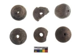 | Description / विवरण | There are six bead, made up from Terracotta,most of these are globular ,roughly rounded shaped Beads, with having a central perforation. |