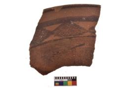 | Description / विवरण | Specimen of black on red ware with decorative geometric Net motif painting. |