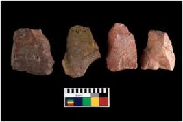 | Description / विवरण | There are n-4 of intact utilized flakes made up of Chert. Some of them have bulge of percussion, some are flat flakes and few are retouched. |