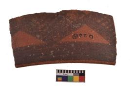 | Description / विवरण | Specimen of black on red ware with decorative geometric Net motif painting. |