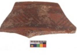 | Description / विवरण | Specimen of potsherd with decorative geometric Linear Pattern painting, Type Black on Red Ware . |