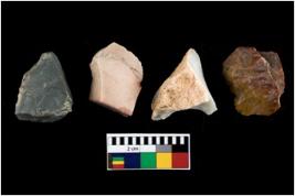 | Description / विवरण | There are n-4 of intact utilized flakes made up of Chert. Some of them have bulge of percussion, some are flat flakes and few are retouched. |