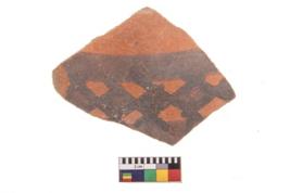 | Description / विवरण | Specimen of potsherd with black decorative geometric painting. Type Black on Red Ware . |