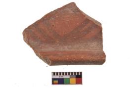 | Description / विवरण | Specimen of black on red ware with decorative geometric Its sides sloping inwards and with a featureless rim painting. |