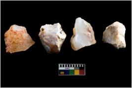 | Description / विवरण | There are n-4 of intact cores made up of Chert.There are multidirectional irregular dominant scar pattern on both dorsal and ventral face of the cores. |