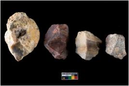 | Description / विवरण | There are n-4 of intact cores made up of Chert.There are multidirectional irregular dominant scar pattern on both dorsal and ventral face of the cores. |