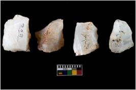 | Description / विवरण | There are n-4 of intact cores made up Chalcedony.There are multidirectional irregular dominant scar pattern on both dorsal and ventral face of the cores. |