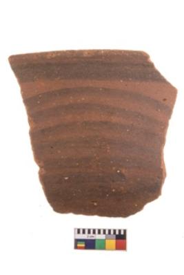| Description / विवरण | Specimen of potsherd with black decorative geometric painting. Type Black on Red Ware . |