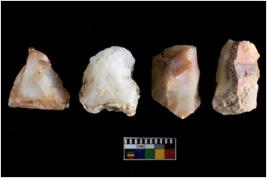 | Description / विवरण | There are n-4 of intact cores. Out of them 1 is made up Chalcedony and 3 are made up of Chert.There are multidirectional irregular dominant scar pattern on both dorsal and ventral face of the cores. |