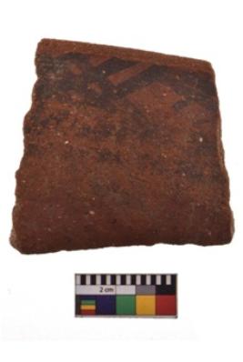 | Description / विवरण | Specimen of black on red ware with decorative geometric Net motif painting. |