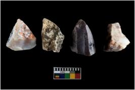 | Description / विवरण | There are n-4 of intact cores made up of Chert.There are multidirectional irregular dominant scar pattern on both dorsal and ventral face of the cores. |