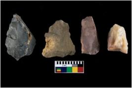 | Description / विवरण | There are n-4 of intact utilized flakes made up of Chert. Some of them have bulge of percussion, some are flat flakes and few are retouched. |