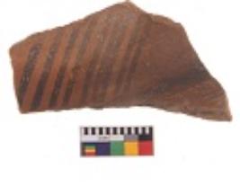 | Description / विवरण | Specimen of potsherd with decorative geometric Linear Pattern painting, Type Black on Red Ware . |
