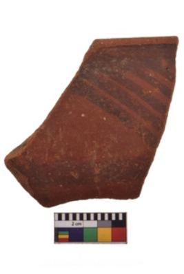 | Description / विवरण | Specimen of black on red ware with decorative geometric Outcurved lines painting. |
