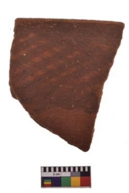 | Description / विवरण | Specimen of black on red ware with decorative geometric Net motif painting. |