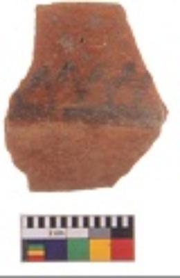 | Description / विवरण | Specimen of potsherd with decorative zigzag painting, Type Black on Red Ware . |