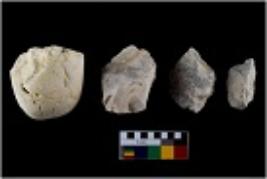 | Description / विवरण | Specimen of cores with visible weathered cortex and few broad fluted marks. Almost all are irregular in shape and size. |