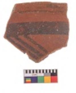 | Description / विवरण | Specimen of potsherd with decorative geometric Linear Pattern painting, Type Black on Red Ware . |