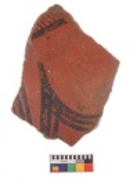 | Description / विवरण | Specimen of potsherd with decorative painting, Type Black on Red Ware . |