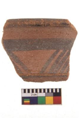 | Description / विवरण | Specimen of potsherd with black decorative geometric painting. Type Black on Red Ware . |