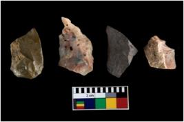 | Description / विवरण | There are n-4 of intact utilized flakes made up of Chert. Some of them have bulge of percussion, some are flat flakes and few are retouched. |